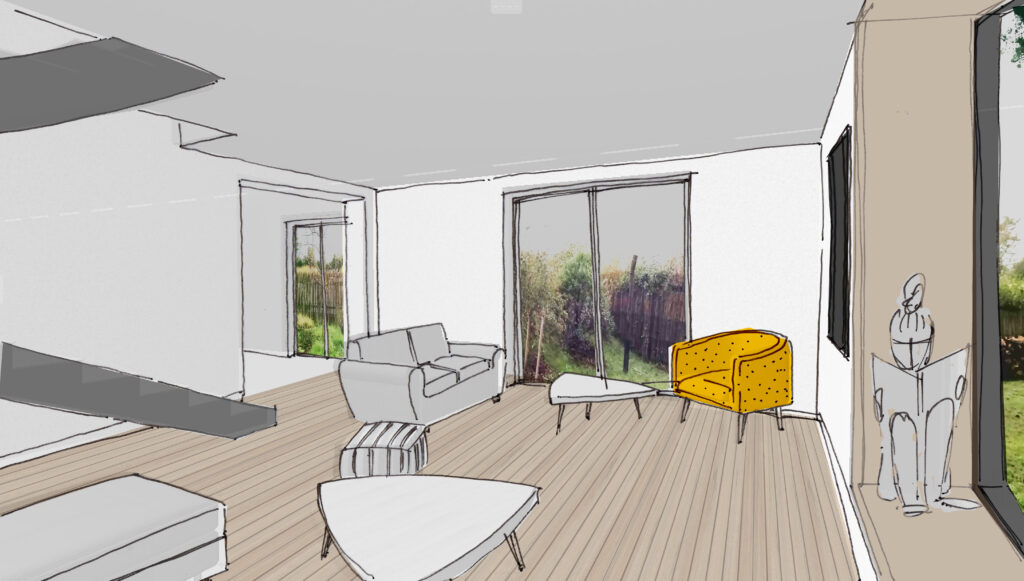 Bardage métallique, isolation en fibre de bois, menuiseries aluminium.